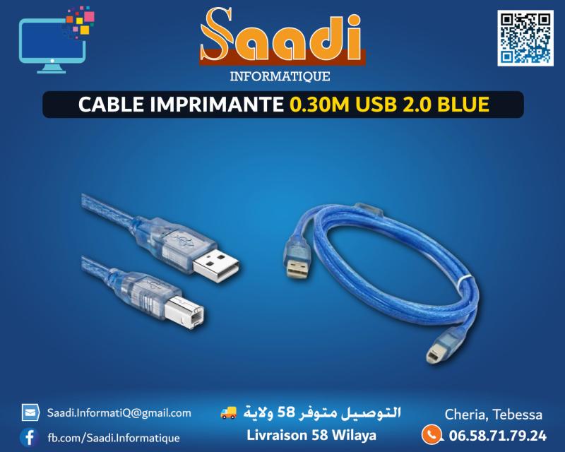 ▶️🔹 CABLE IMPRIMANTE 0.30M USB 2.0 BLUE 🔹◀️