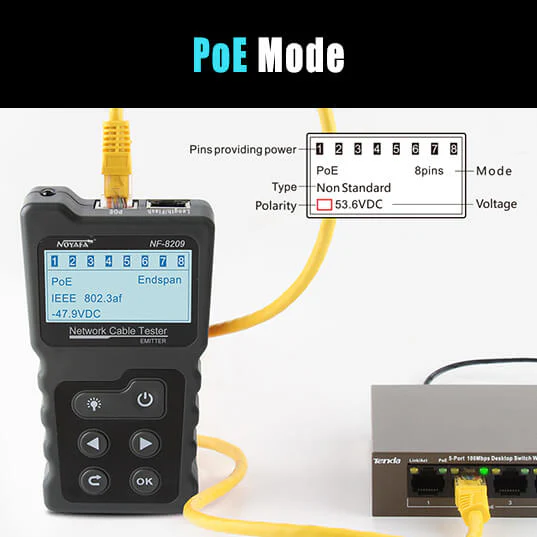 Testeur de câble réseau LCD NF-8209 Tracker de fil Vérificateur PoE Voltage et courant PoE en ligne avec testeur de câble Éclairer